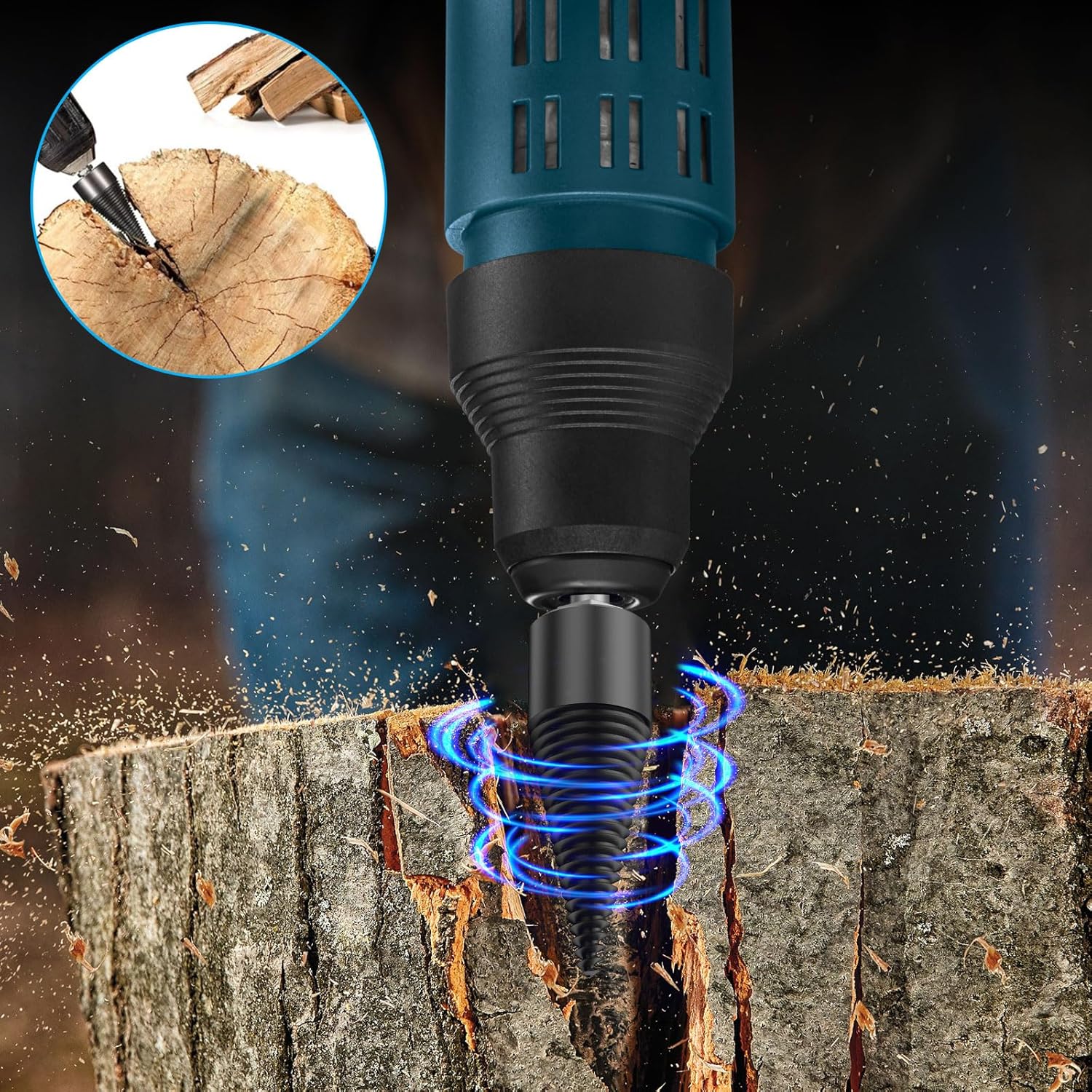 Ja, bevestig hem gewoon aan uw boormachine en hij splijt efficiënt hout met minimale inspanning