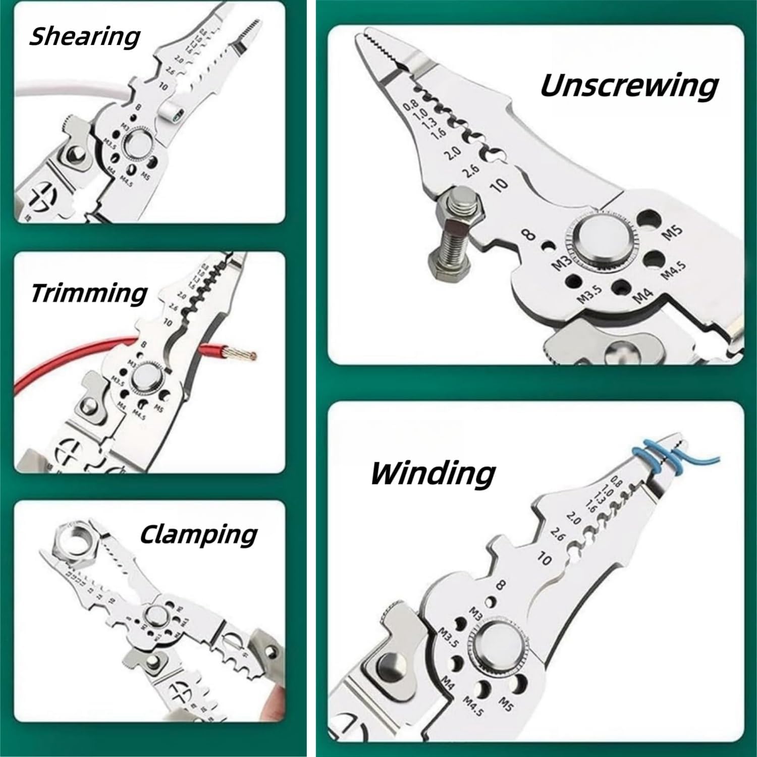 Praktische multifunctionele tool voldoet aan een verscheidenheid aan operationele vereisten van elektriciens, zoals het knippen van de draad, strippen, krimpen, wikkelen, splitsen, klemmen en sleutelen. Het is niet nodig om de tang vaak te wisselen tijdens gebruik, wat de werkefficiëntie verbetert. Geschikt voor draden van 0,8/1,0/1,3/1,6/2,0/2,6.