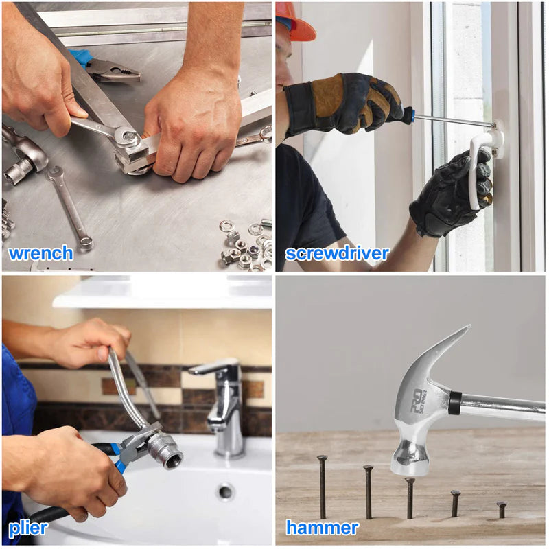 Een uitgebreide set professionele mechanische handgereedschappen is perfect voor klussen in huis, auto's, meubels monteren, leidingen repareren en doe-het-zelf.